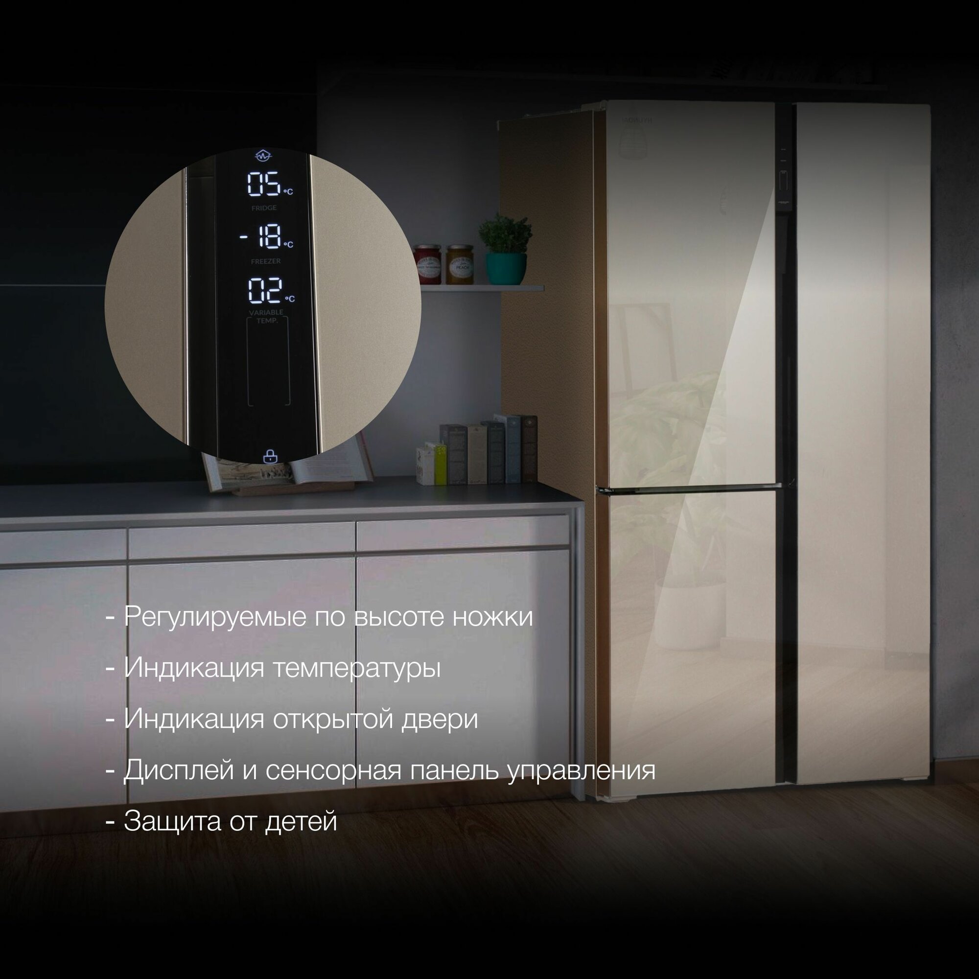 Холодильник Side-by-Side Hyundai CS5073FV, шампань