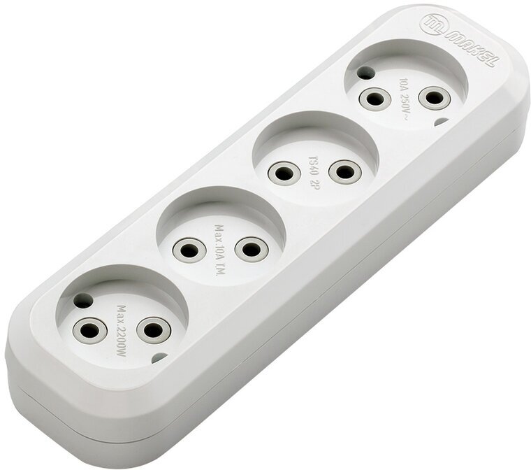 Тройник для розетки электрический с заземлением 16А, белый