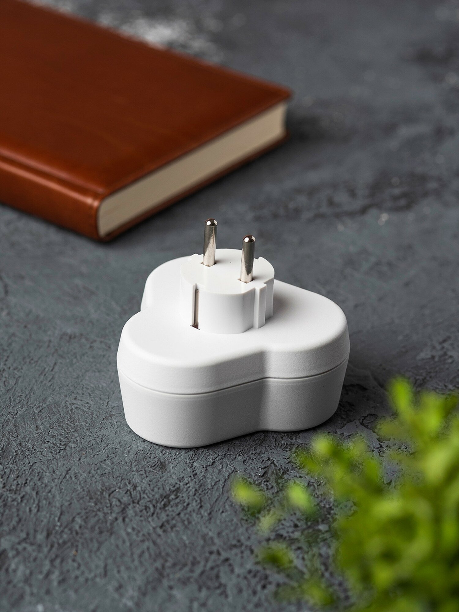 Тройник для розетки электрический с заземлением 16А, белый