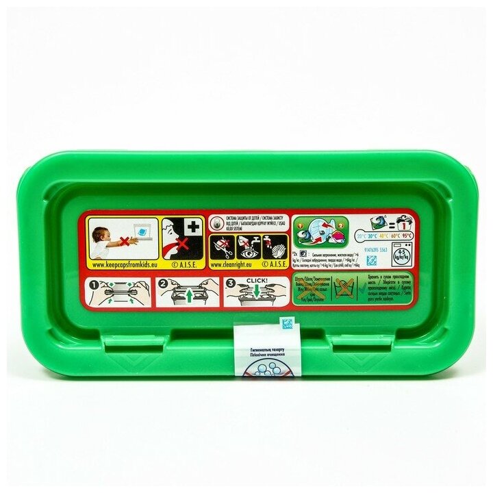 Капсулы располагаются в ярко зеленом пластиковом контейнере массой 290,4 гр. Всего в контейнере 12 капсул, которые не содержат красителей. Оболочка капсулы сделана из желеобразного вещества, которая быстро растворяется в воде. Контейнер-коробка сверху закрывается крышечкой замочком - защелками. Замочек настолько умно сделан, что безапасен для маленьких детей, которые не смогут открыть контейнер. Моющее средство удобно в применении - просто надо положить капсулу в стиральную машину с бельём, установить нужный режим и ждать окончания стирки. Очень хорошо использовать для стирки курток, плащей. После стирки не остаётся разводов, средство прекрасно вымывается. Важно ещё то , что капсула не вызывают раздражения - они антиаллергены. |