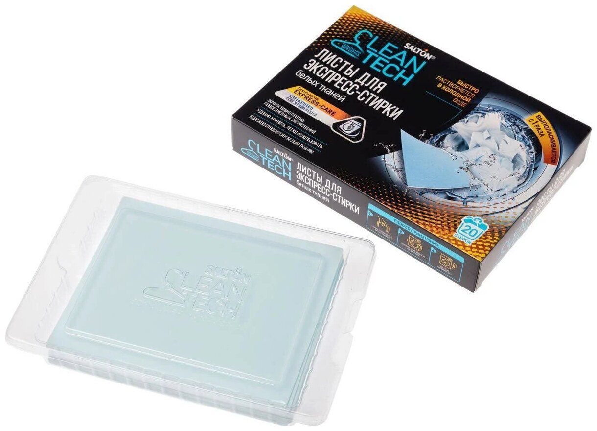 SALTON пластины CleanTech для экспресс-стирки белых тканей, картонная пачка, 20 шт., 0.14 кг, количество стирок: 20 интересное:
