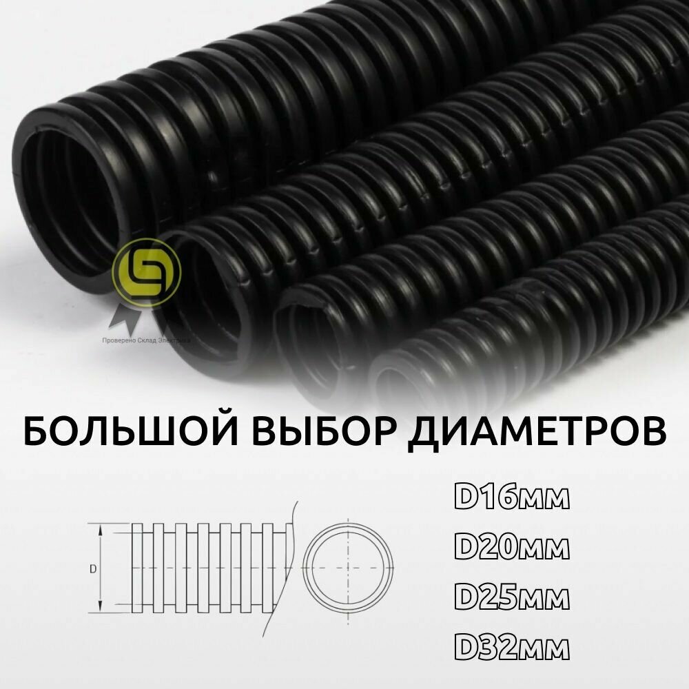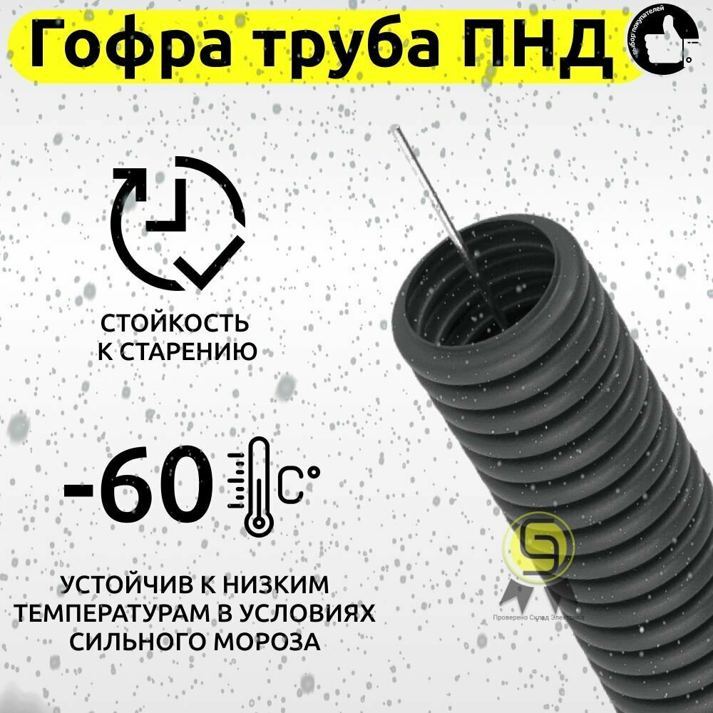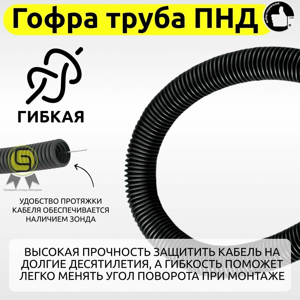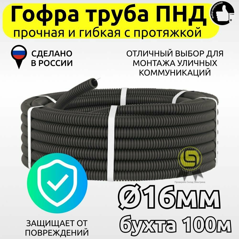 Гофра ПНД 16мм для кабеля труба гофрированная с протяжкой черная 100м