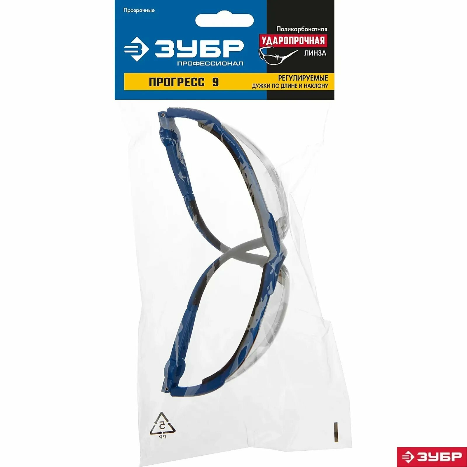 Зубр Прогресс 9 Прозрачные, очки защитные открытого типа, регулируемые дужки. 110310_z01