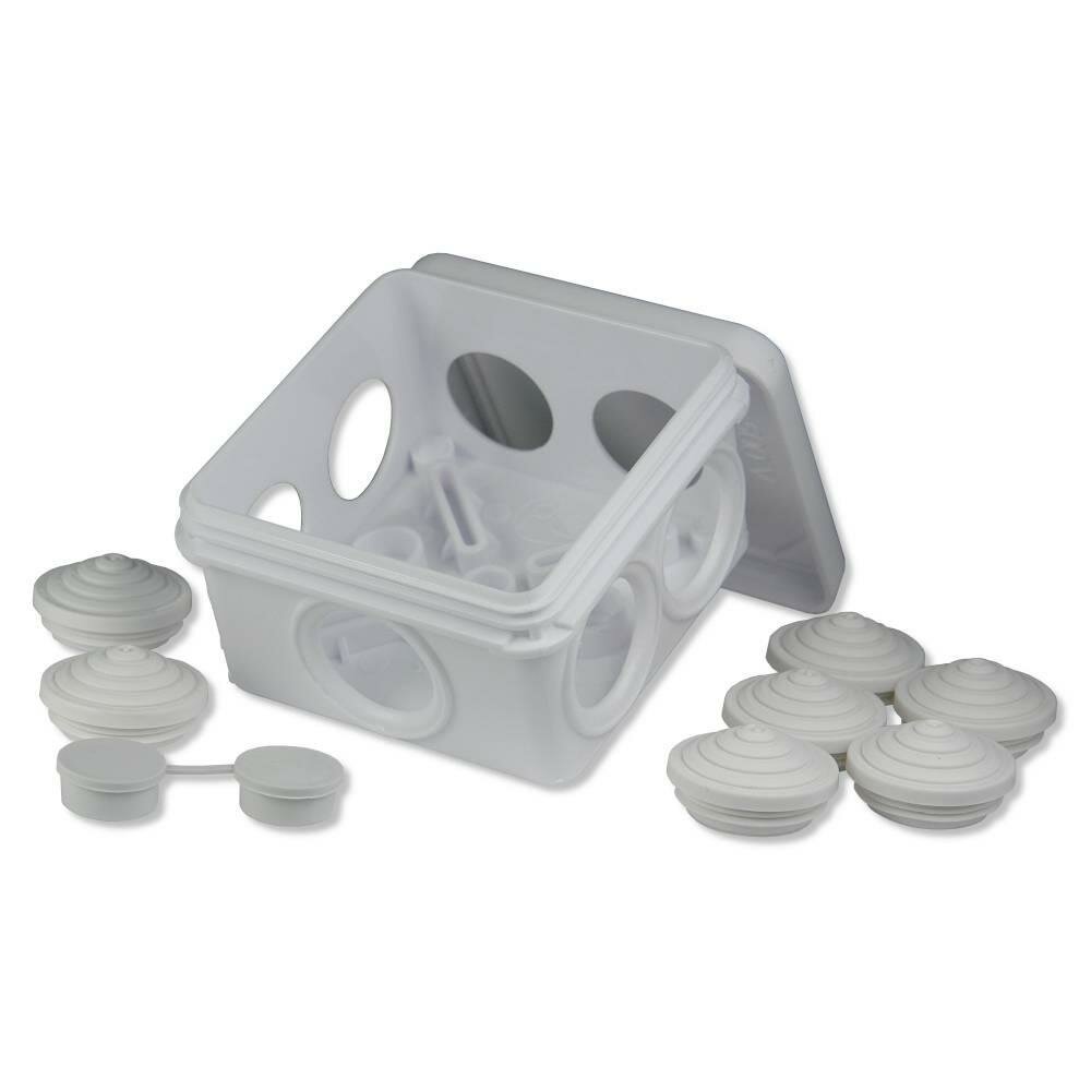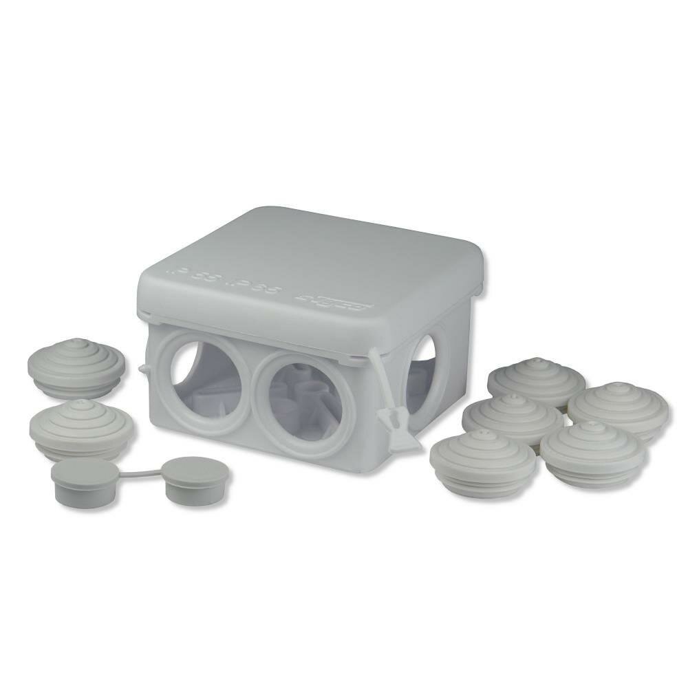 Купить Коробка распределительная ОП 70х70х40мм 7 вводов IP55 сер. Ruvinil 67030