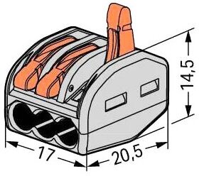 Клемма WAGO с рычагами 3-проводная 222-413, 10 шт.