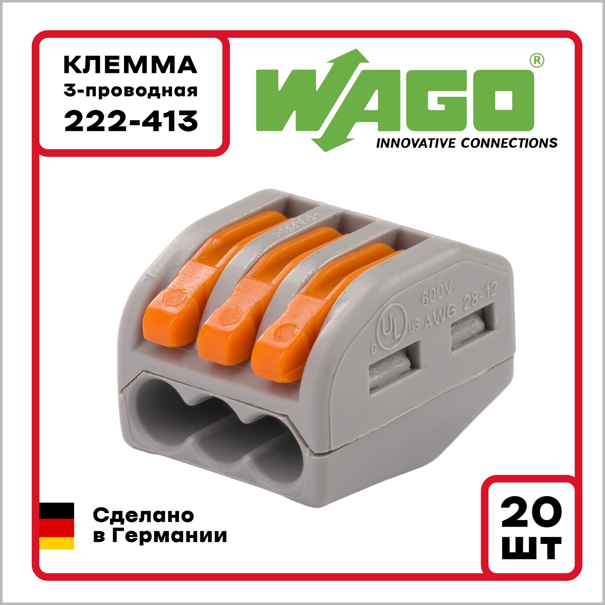 Клемма WAGO 222-413, трехконтактная, 20 шт