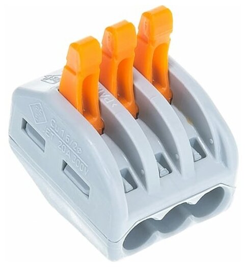 222-413 Универсальная клемма, 3-проводная, серая (0,08-2,5/4 мм²) (20 шт/уп) WAGO