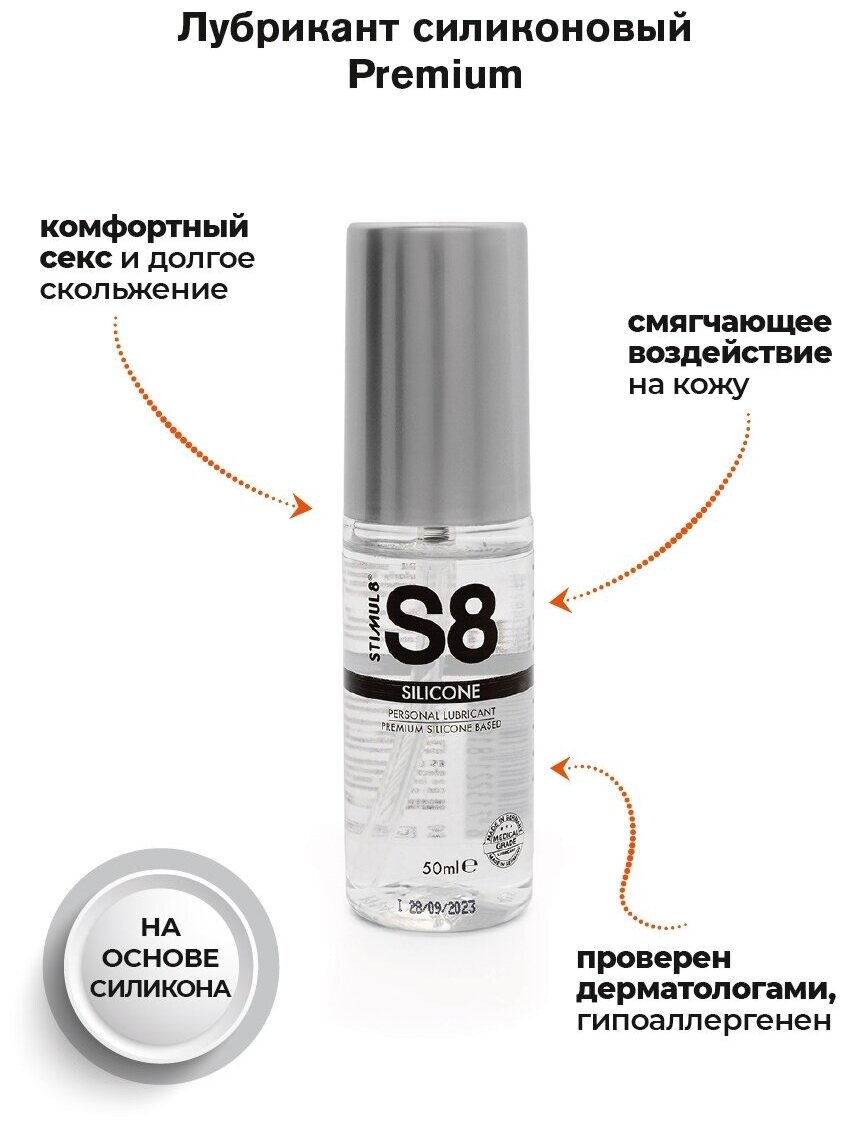 Лубрикант премиум Stimul8 S8 Silicon на силиконовой основе, вес 50 г, объем 50 мл, 1 шт.