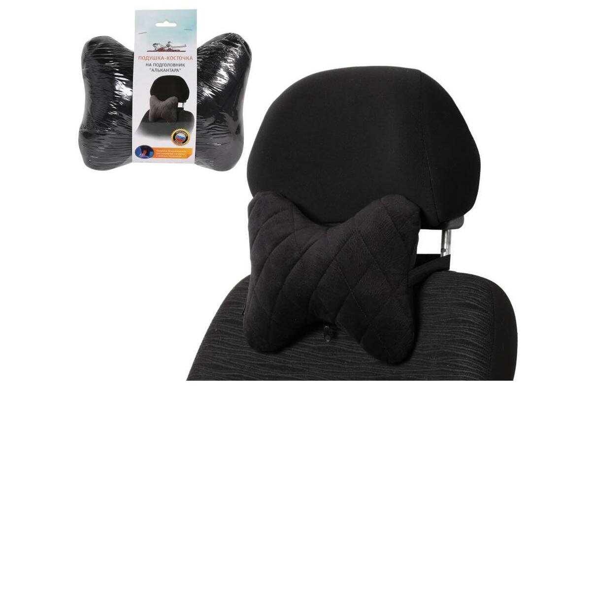 Подушка-косточка на подголовник Airline "Алькантара" ASPB01, ткань, 1 шт, черная