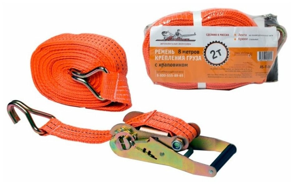 Ремень крепления груза с храповиком 8м, 2т AS-T-06 1шт