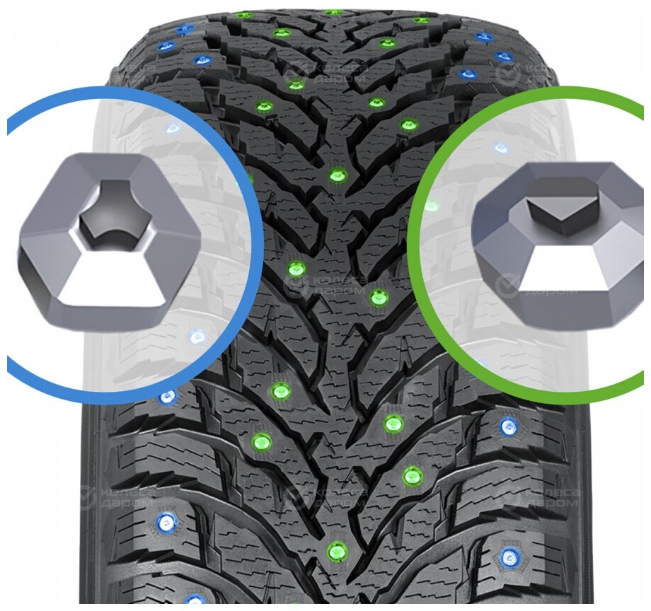 Что сказать шины отличные практически по всем параметрам, стали мягче и комфортнее своих предшественников (могу сравнить только с хаккой 7), самое главное пропала чувствительность к колейности которая сильно напрягала на 7ке. Стыки и ямки проглатывает не теряя в управляемости. Шипы шумят но не воют по шумности не громче той же X-Ice North 4 которую позиционируют как самую тихую, по асфальту практически настолько же комфортна, но не страдает паразитным сдвигом/смещением в поворотах, а в снегу и на льду характеристики гораздо увереннее. Нет эффекта скольжения по льду присыпанному свежим снегом как у некоторых шин, сцепление на всех видах покрытий одинаково уверенное без перекосов в какую либо сторону как и должно быть у зимней резины. Хорошая курсовая устойчивость, нет увода автомобиля в сторону при пробуксовке одного колеса. Качество изготовления достойное, биений на балансировке не было, максимально навешанный груз 10гр. но недостаток всё таки присутствует, это выкрашивание резины вокруг шипа уже на стадии обкатки. На данный момент вокруг всех шипов сформировались канавки именно выкрошенной резины, ( к примеру на той же X-Ice North 4 резина вокруг шипа за сезон осталась нетронутой). |