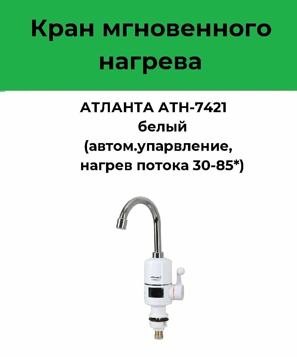 Водонагреватель на раковину Atlanta ATH-7421 white, 3000Вт, нагрев воды до 30-85 C, дисплей