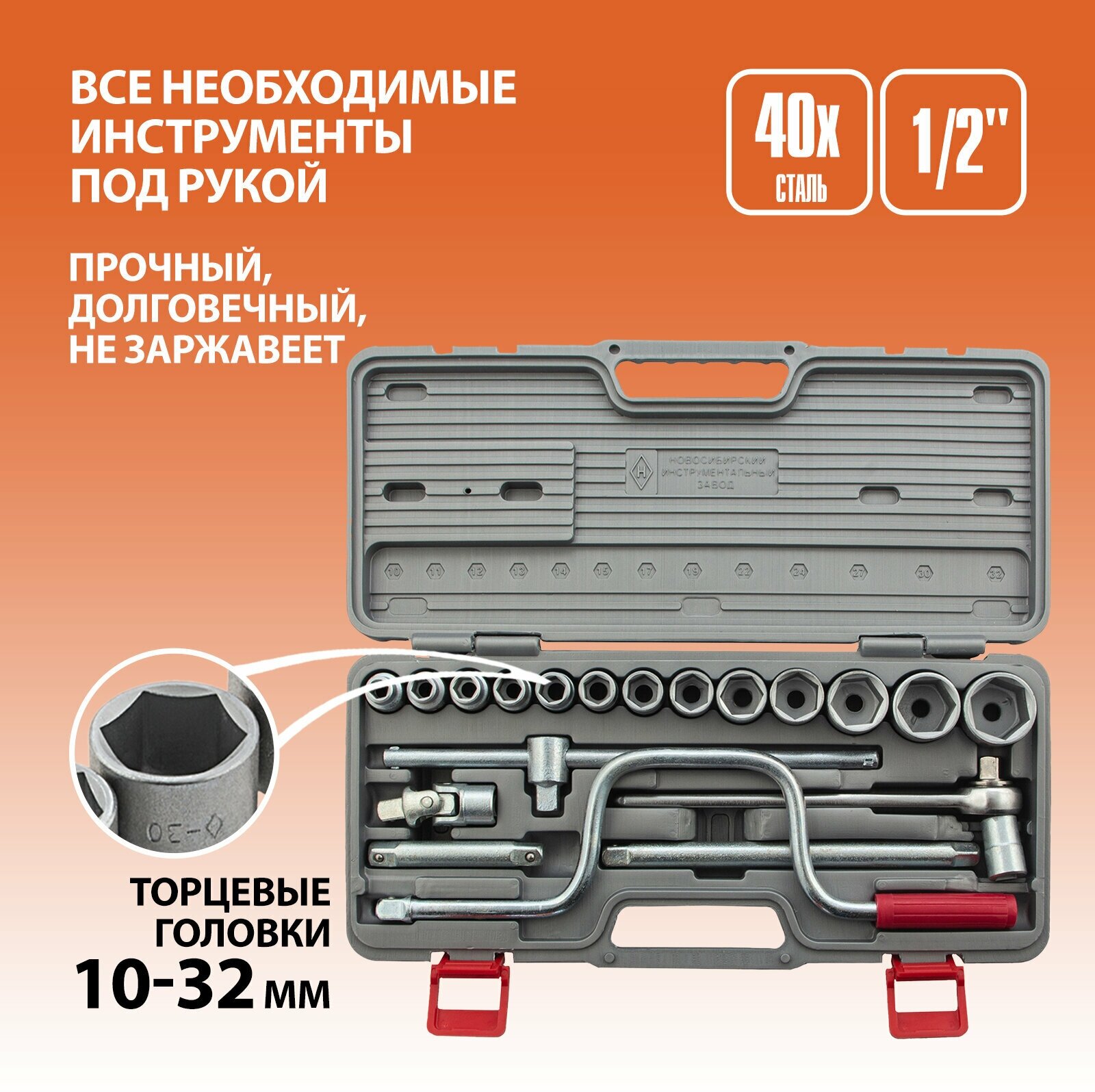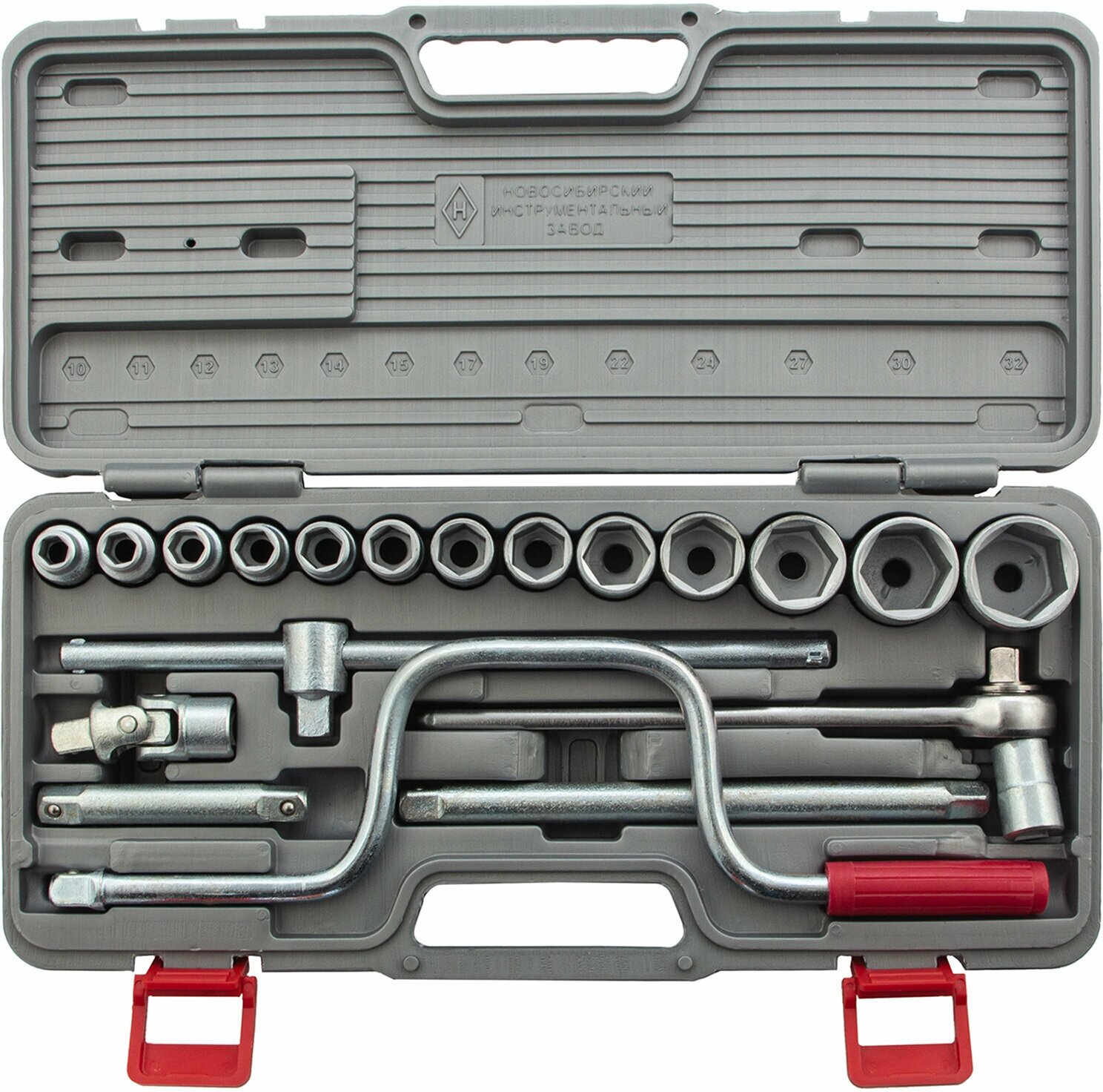 НИЗ Набор торцовых головок НИЗ "Шоферский инструмент №3", 1/2", сталь 40Х, в пластиковом кейсе, 19 предметов , ( 2761-30 )