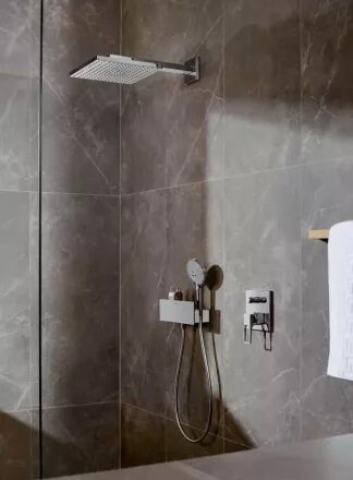 Raindance E, лейка верхнего душа, 30 см, square, чёрный цвет, с держателем, матовый, антикальк, арт. 26238670, Hansgrohe