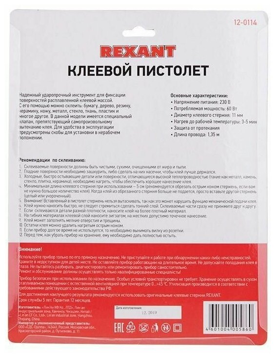 Пистолет клеевой 60Вт профи Rexant 12-0114 интересное: