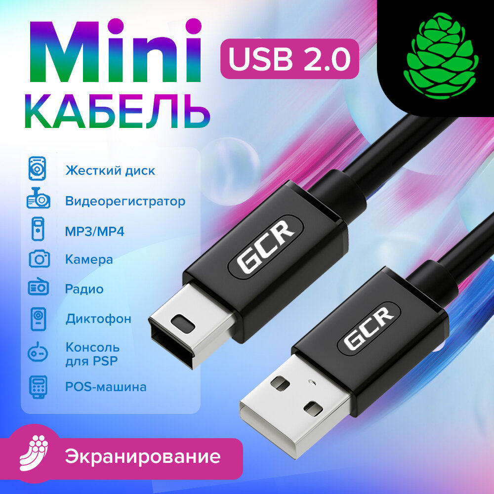 Купить GCR Кабель 1.8m USB 2.0, AM/mini, черный, 28/28 AWG, экран, армированный, морозостойкий