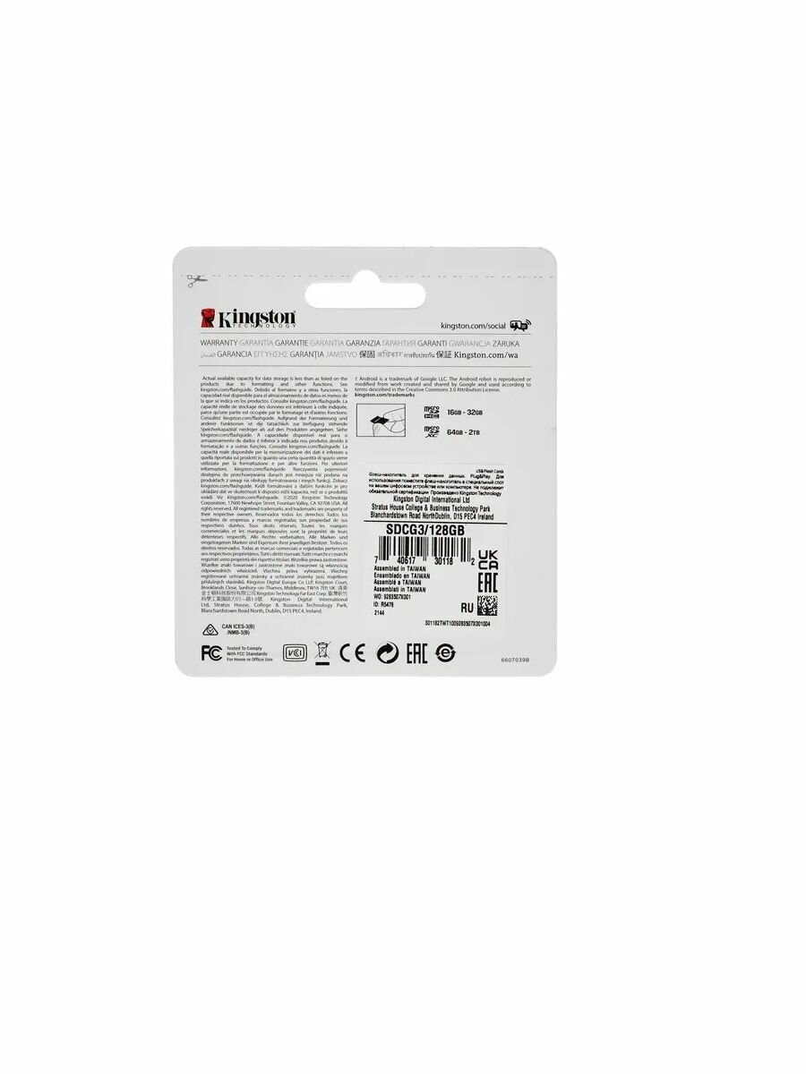 Карта памяти MicroSD 128Гб Kingston SDCG3/128GB