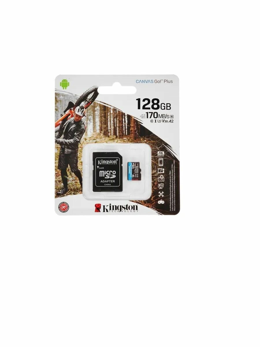 Карта памяти Kingston CANVAS Go! Plus - SDCG3/128GB - microSDXC UHS-I, U3, V30, A2 - 170/90МБ/с без адаптера