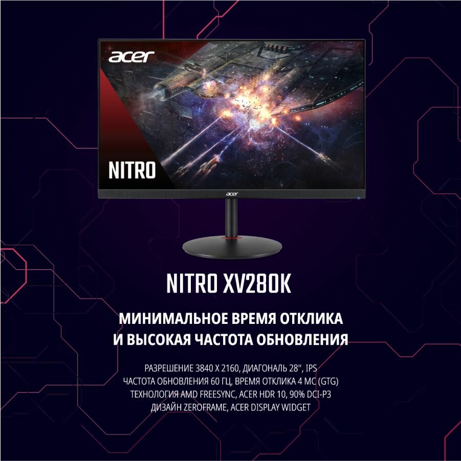 28" Монитор Acer Nitro XV280Kbmiiprx, 3840x2160, 60 Гц, IPS, черный интересное: