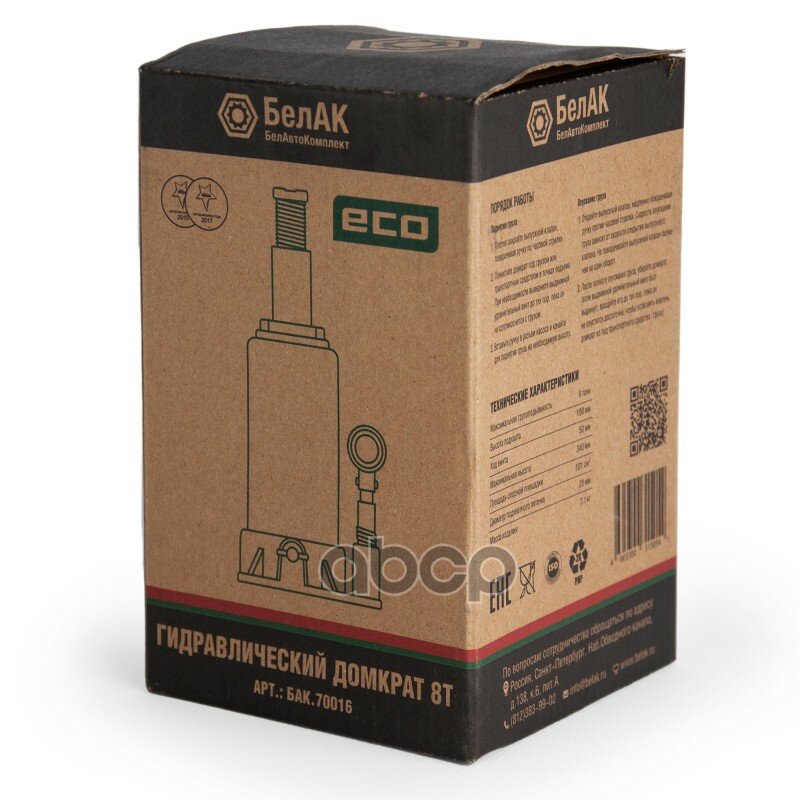 БАК.70016_домкрат! бутылочный гидравлический ECO 8 т.\ белавтокомплект / арт. BAK70016 - (1 шт)