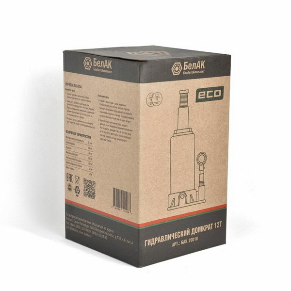 Бак.70018_домкрат! Бутылочный Eco 12 Тонн БелАК арт. БАК.70018