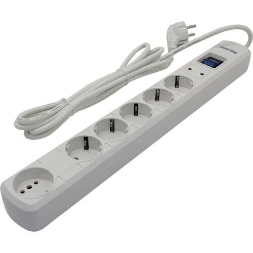 Удлинитель с функцией сетевого фильтра 16А, 3500 Вт, 6 гнезд, длина 3,0 м, белый, Smartbuy