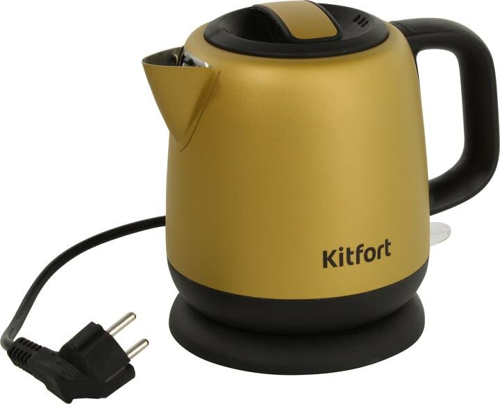 Чайник электрический KITFORT 1 л, 1630 вт, нагревательный элемент, сталь, золотистый (КТ-6111)