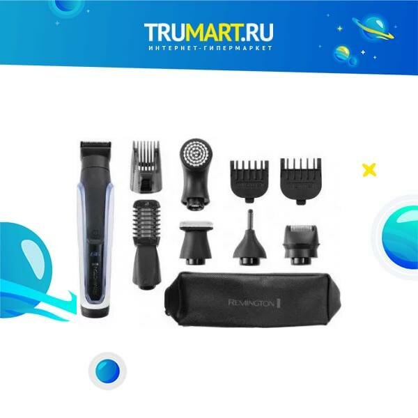 Машинка для стрижки волос Remington Groom Kit PG6130, 10 насадок, самозатачивающиеся лезвия, автономная работа 40 мин, зарядка 16 ч, подставка для хранения, черный