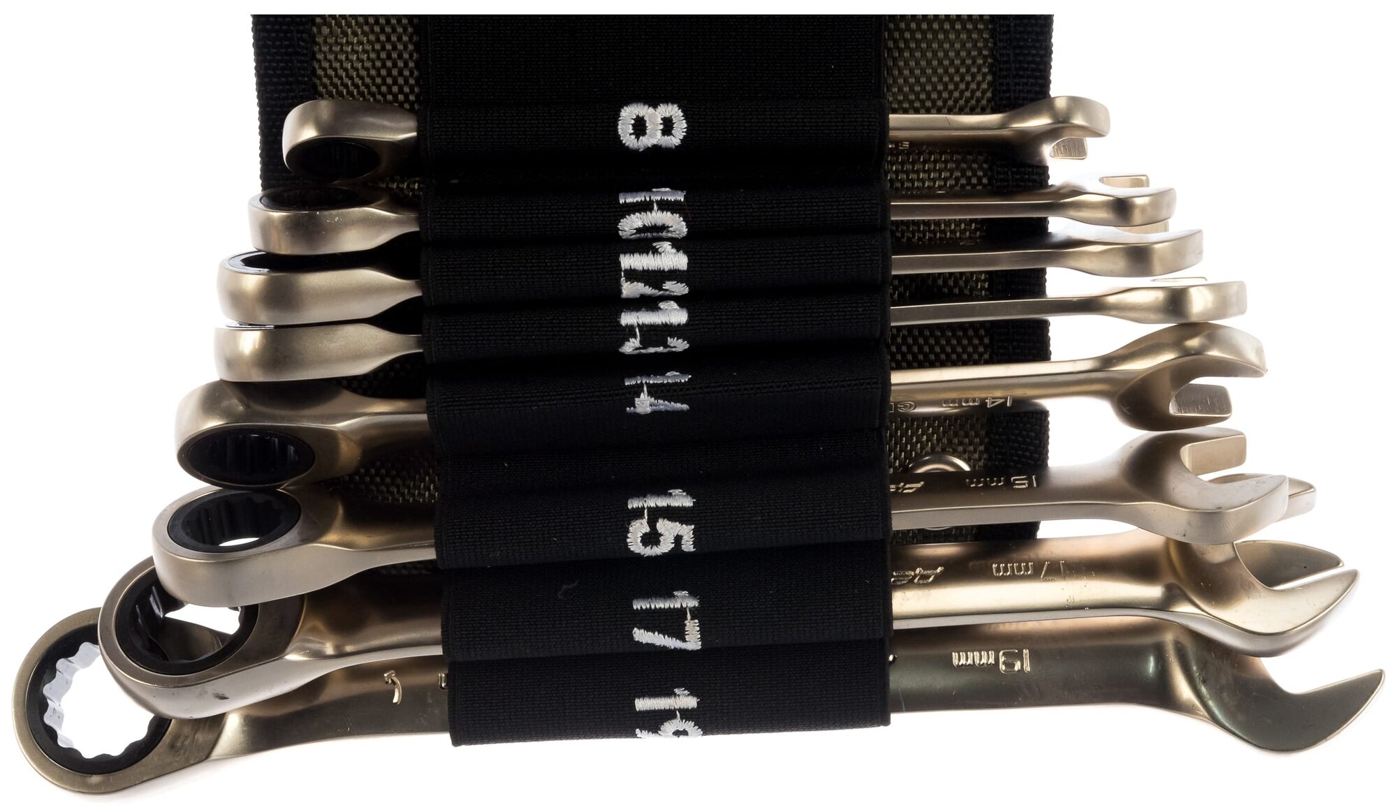 Набор ключей трещоточных комбинированных 8 шт (8 10 12 13 14 15 17 19 мм) в фирменной сумке