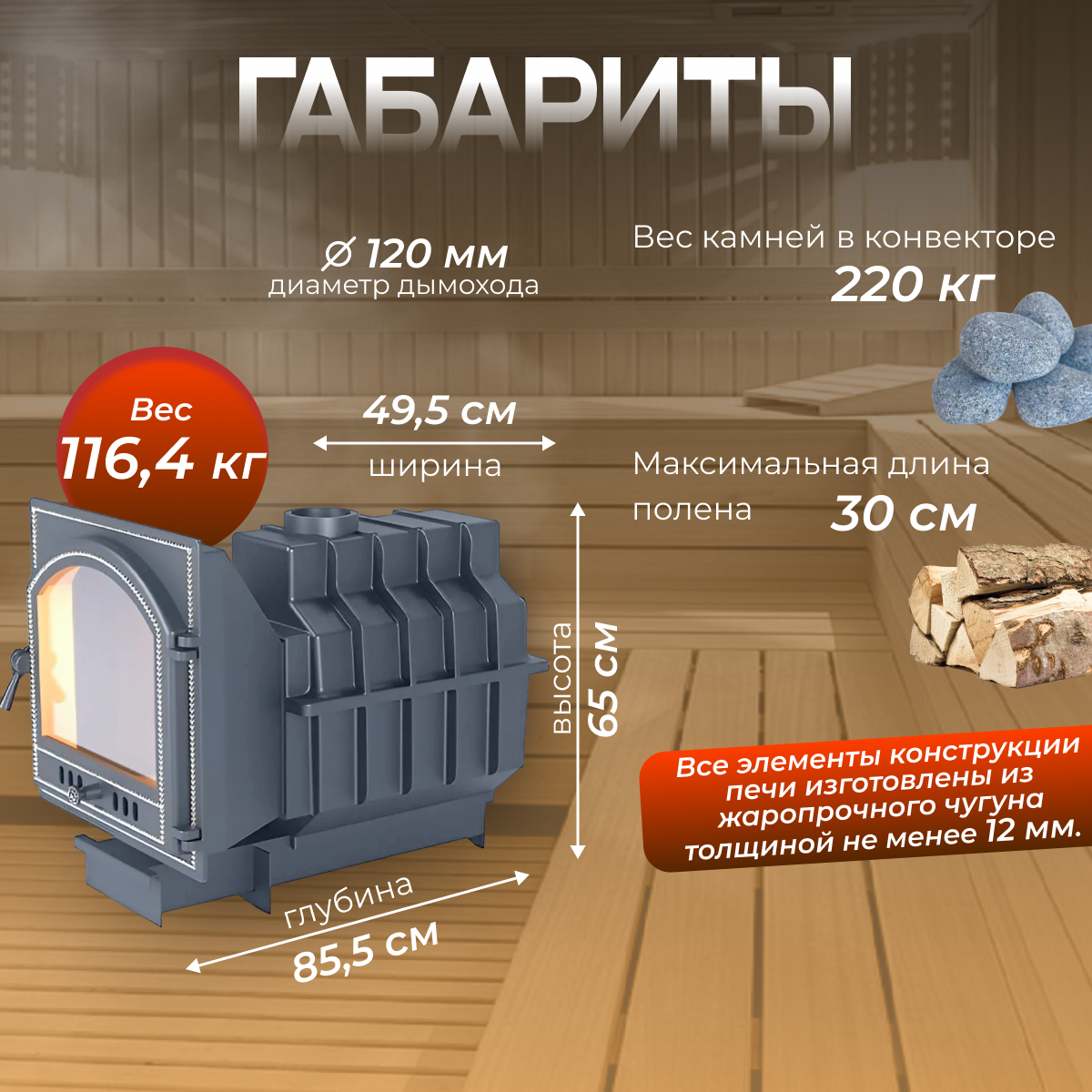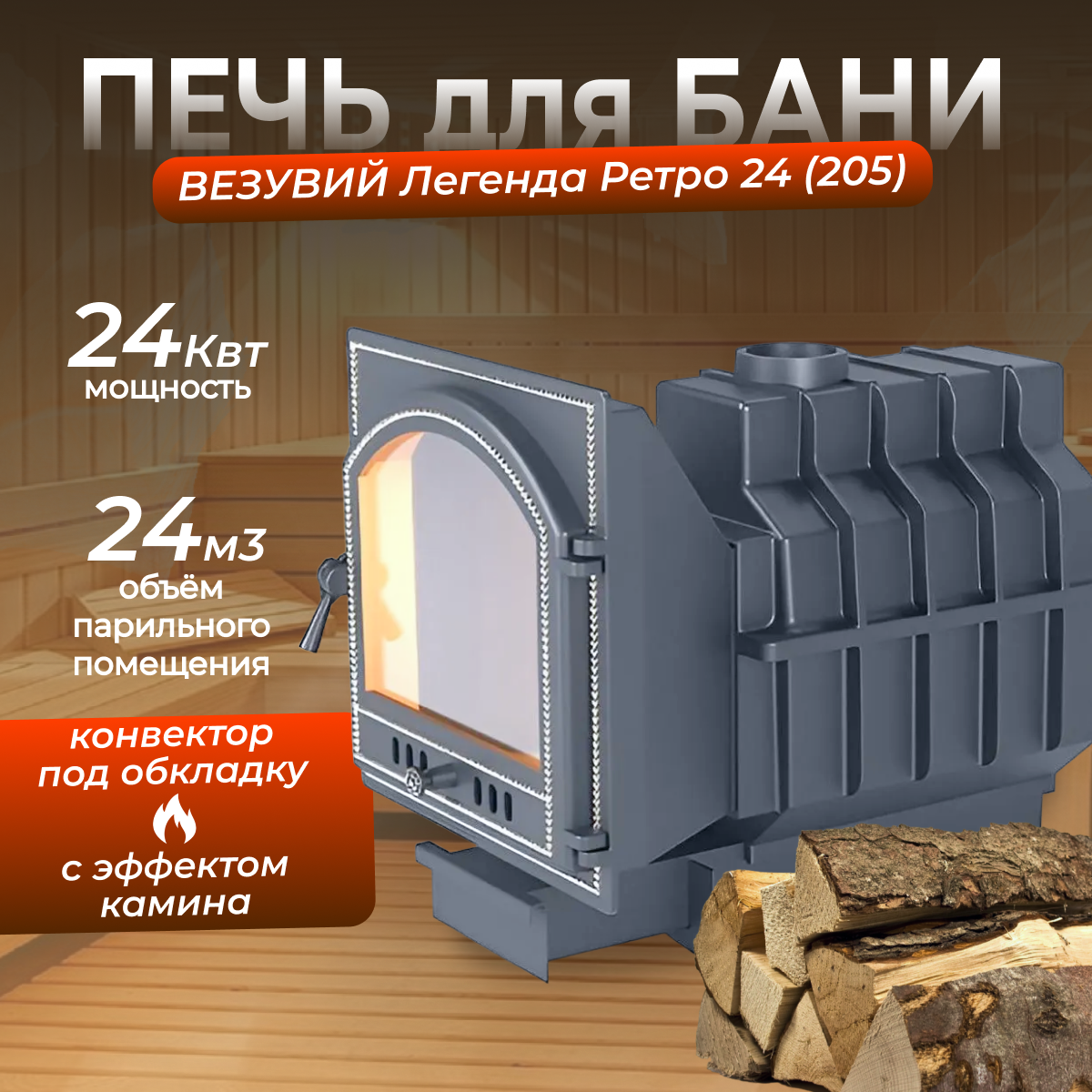 Чугунная печь для бани/сауны на дровах Везувий Легенда Ретро 24 (ДТ-4)