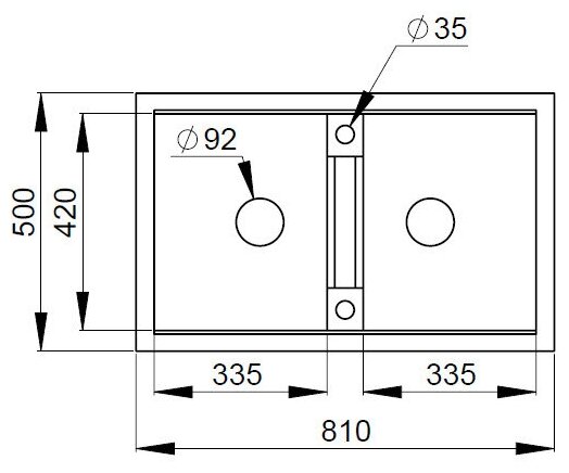 Кухонная мойка кварцевая Granula GR-8101 двухчашевая, врезная, чаша 335x420, 335x429, цвет шварц (8101sv)