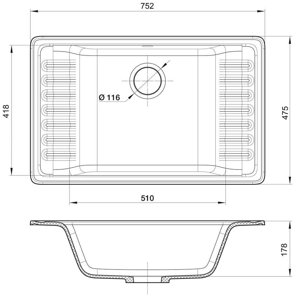 GranFest QUARZ Мойка чаша+кр 752*475 (черный) арт.GF-ZW-