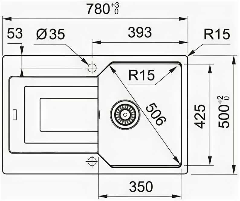 | Диаметр сливного отверстия | 3 1/2 " |