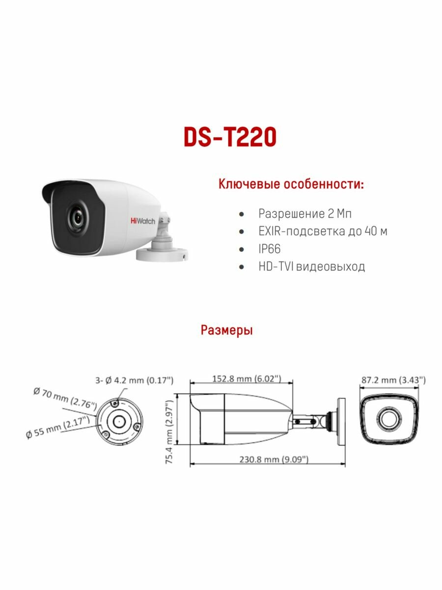 Видеокамера HiWatch DS-T220 (2.8 mm) DS-T220 (2.8 mm)