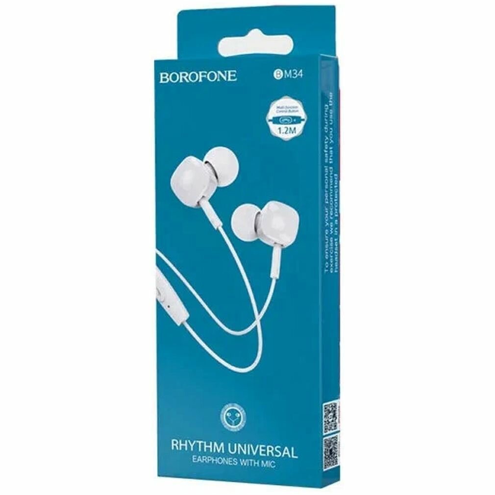 Наушники и гарнитуры Hoco Наушники Borofone BM34, проводные, вакуумные, микрофон, Jack 3.5 мм, 1.2 м, белые
