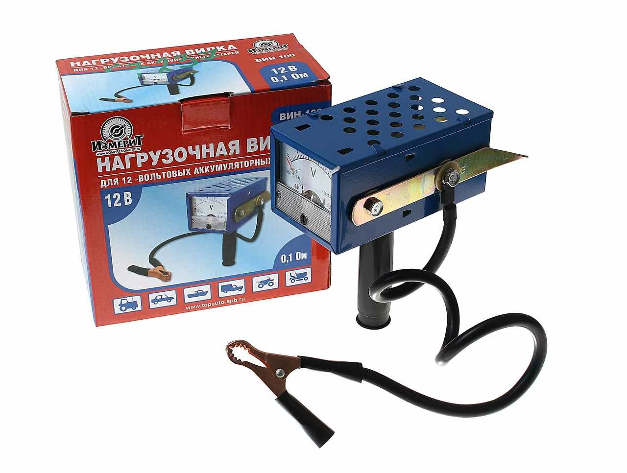 Вилка нагрузочная для измерения заряда АКБ 12V, емкость до 190Ач ВИН-100 ТОП авто, TOP AUTO В100 (1 шт.)