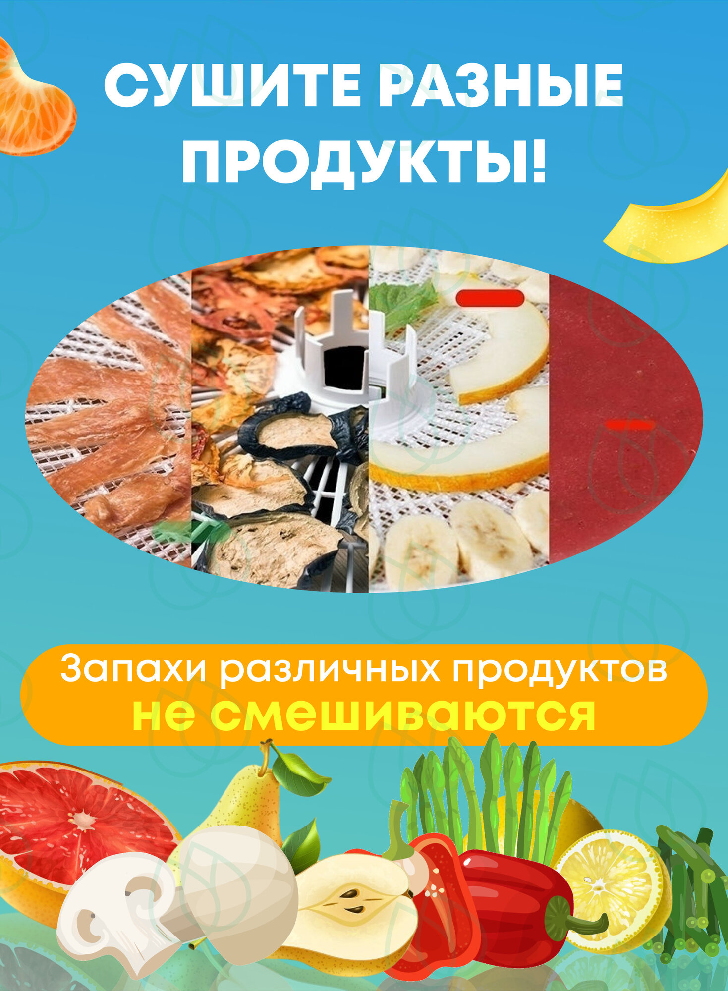 | Плюсы: | Отличная сушилка, очень вместительная, не шумная, хорошая заполняемость поддонов, некоторые поддоны имеют съемное дно, таким образом можно поместить фрукты или грибы в 2 слоя. Если следовать инструкции, то все высыхает отлично, без сыринки. Можно убрать некоторое количество поддонов, если необходимо, и сушить с 2 или тремя. Единственный минус-отсутствие кнопки включения, т е постоянно приходится дергать ее из розетки. Инструкция полностью понятна. Брать можно), сушит хорошо |