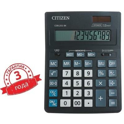 Купить Калькулятор настольный 12-разрядный CDB1201BK, 155 х 205 х 35 мм, двойное питание, чёрный Citizen 36 .