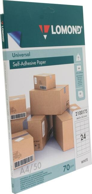 Самоклеящаяся бумага LOMOND универсальная для этикеток, A4, 24 делен. (64 x 33,4 мм), 70 г/м2, 50 л