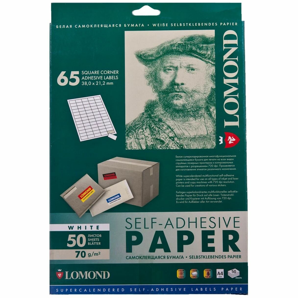 Самоклеящаяся бумага Lomond A4 2100215, 70 г/м2 50 листов, 65 делений (38 x 21.2 мм), белая, для этикеток, универсальная