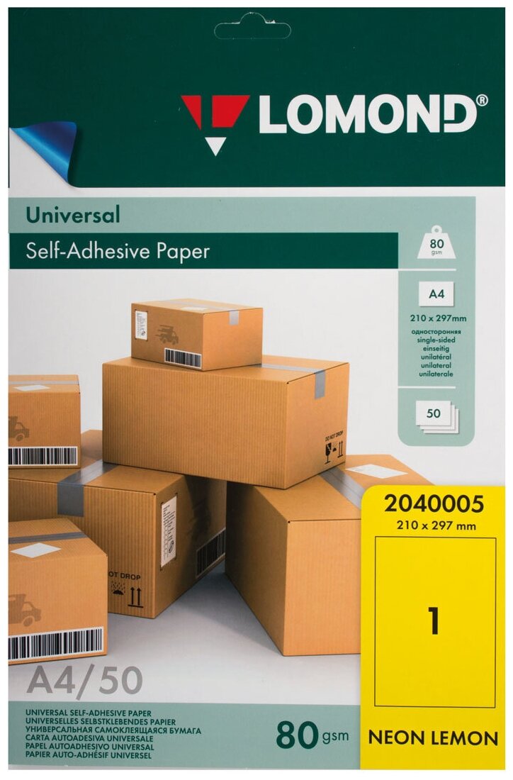 Купить Бумага самоклеящаяся Lomond А4, 50 л, неоновая желтая, неделенная, 80 г/м2 (2040005)