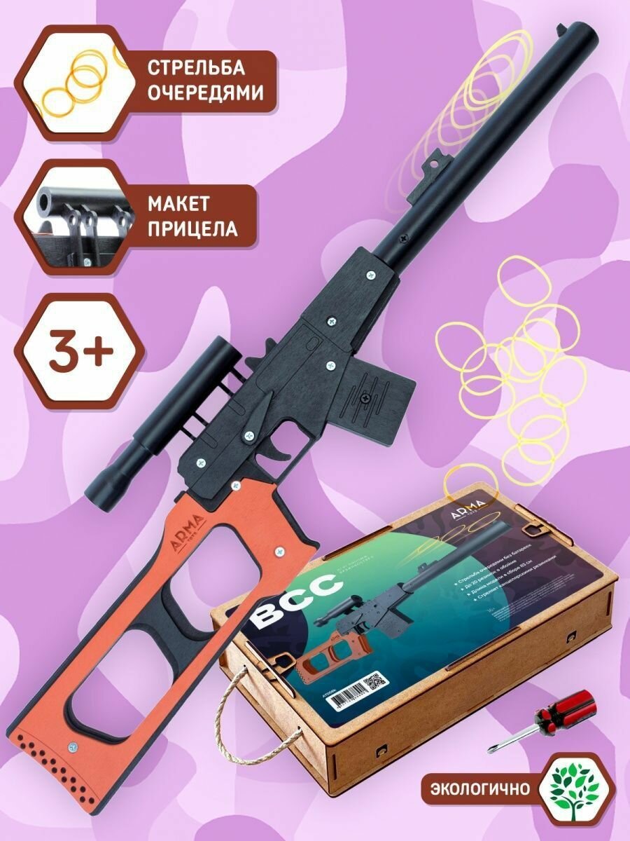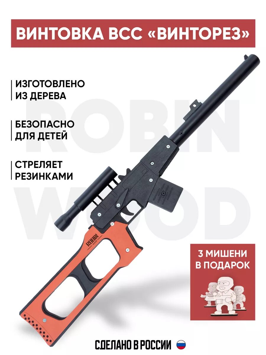 Игрушечная снайперская винтовка Винторез, ВСС, деревянный резинкострел со съемным стволом, собранный, подарок для мальчика