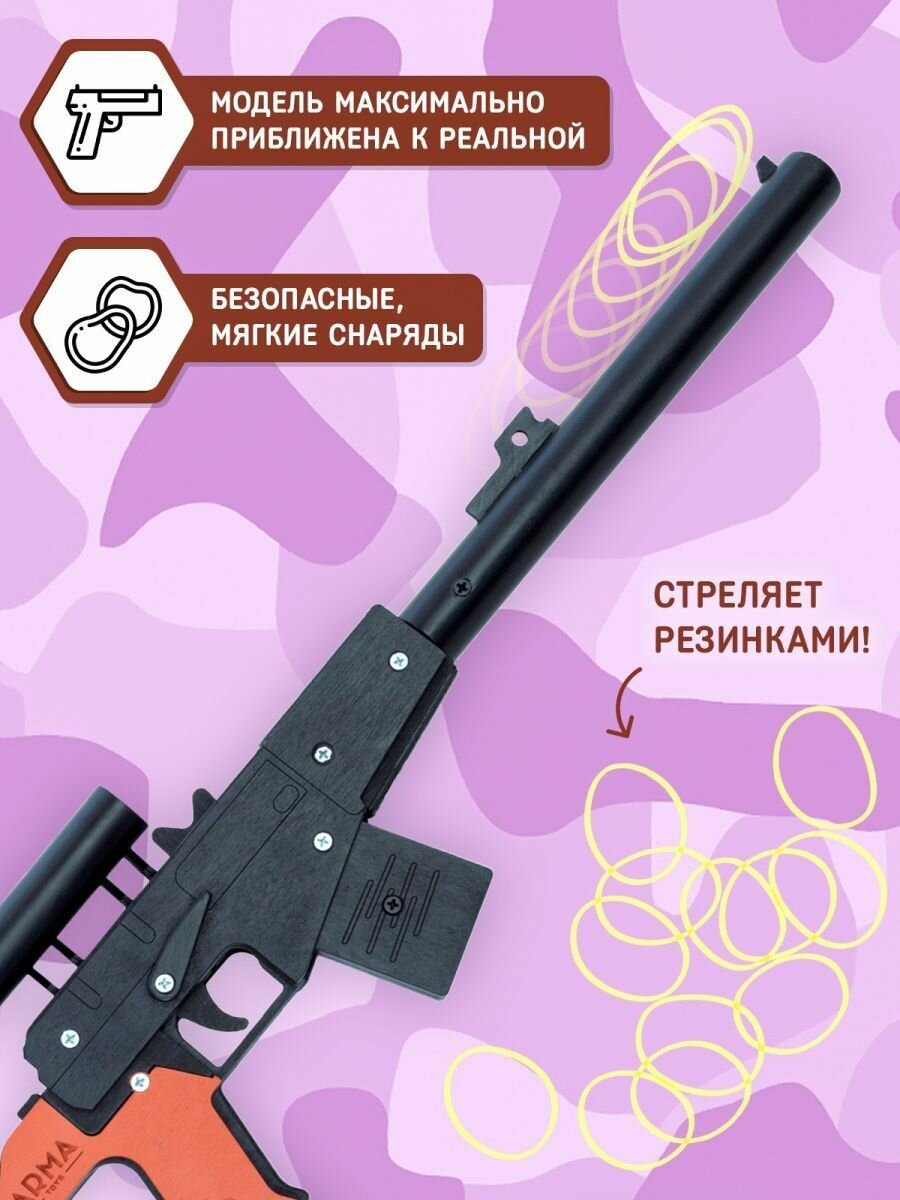 Деревянная игрушечная винтовка-резинкострел ВСС «Винторез», со снайперским прицелом, фрагментарно окрашенная