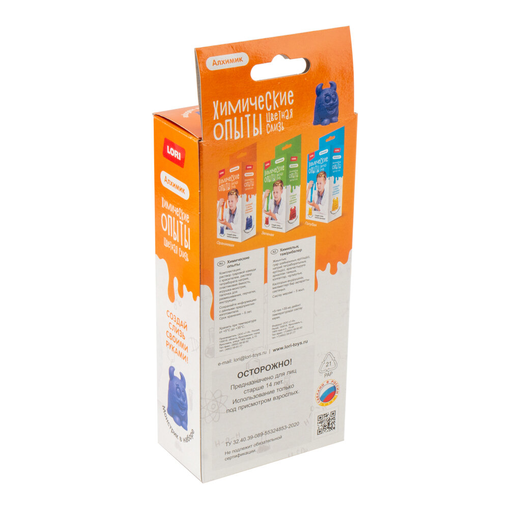 Набор для экспериментов LORI Алхимик Химические опыты Монстрики "Слизь LORI оранжевая"
