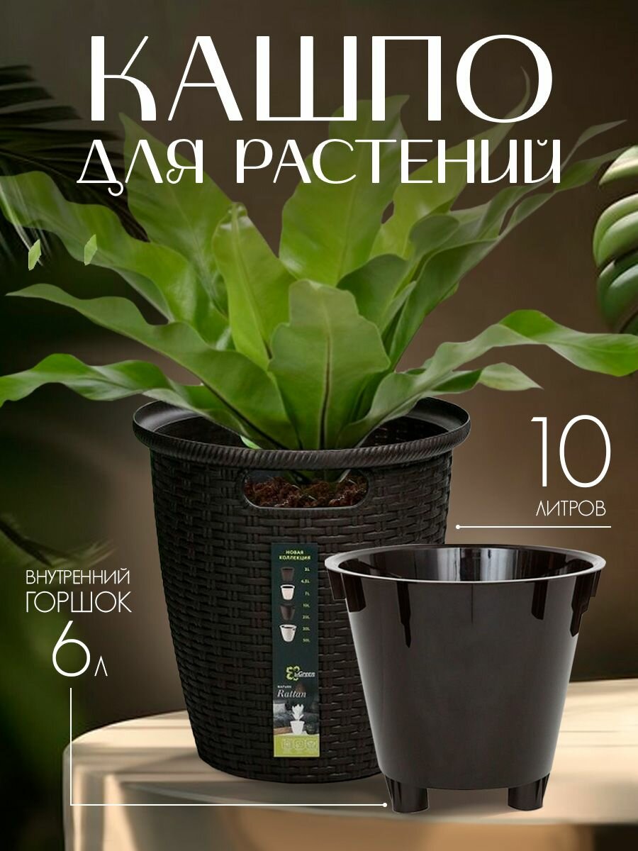 СохранитьКашпо напольное Rattan D 266мм/10 л с внутренним горшком 6 л горький шоколад интересное:
