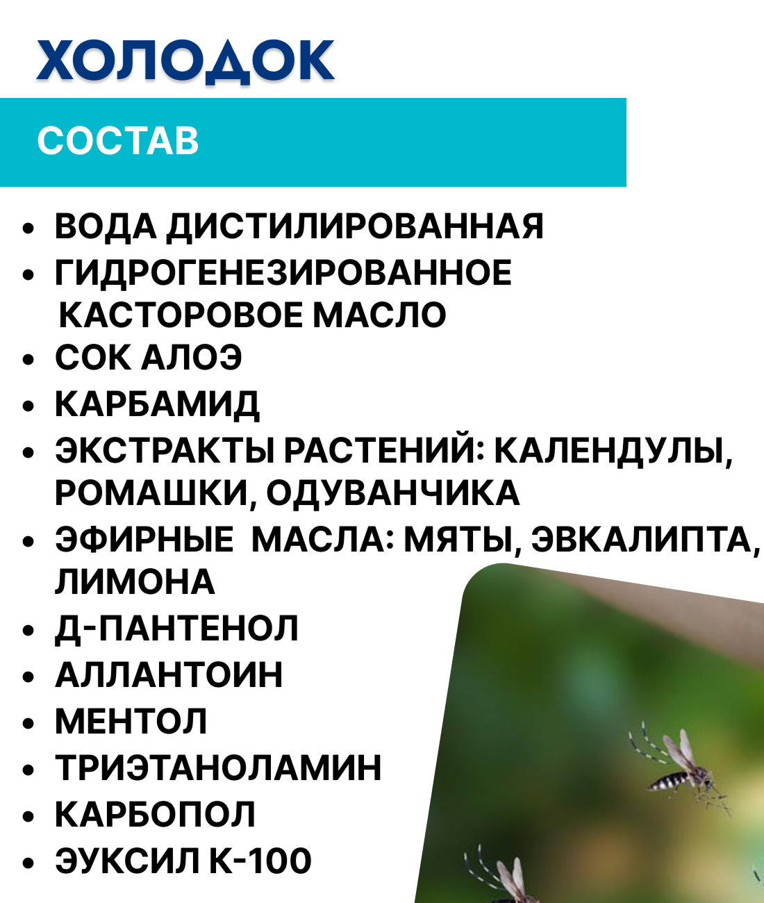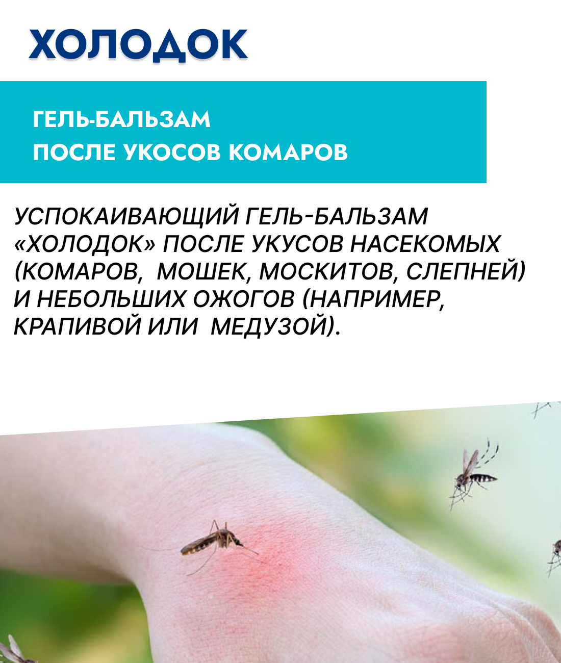 Холодок Гель-бальзам после укусов комаров 50мл. (помогает от ожогов крапивы, медуз) Ваше хозяйство