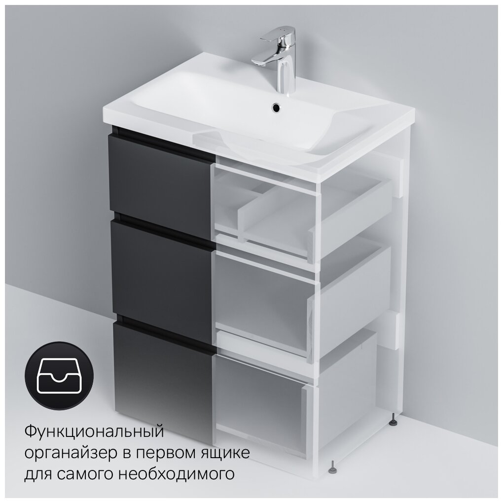 AM.PM Тумба с раковиной AM.PM Gem S 75 графит матовый, напольная, с 3 ящиками
