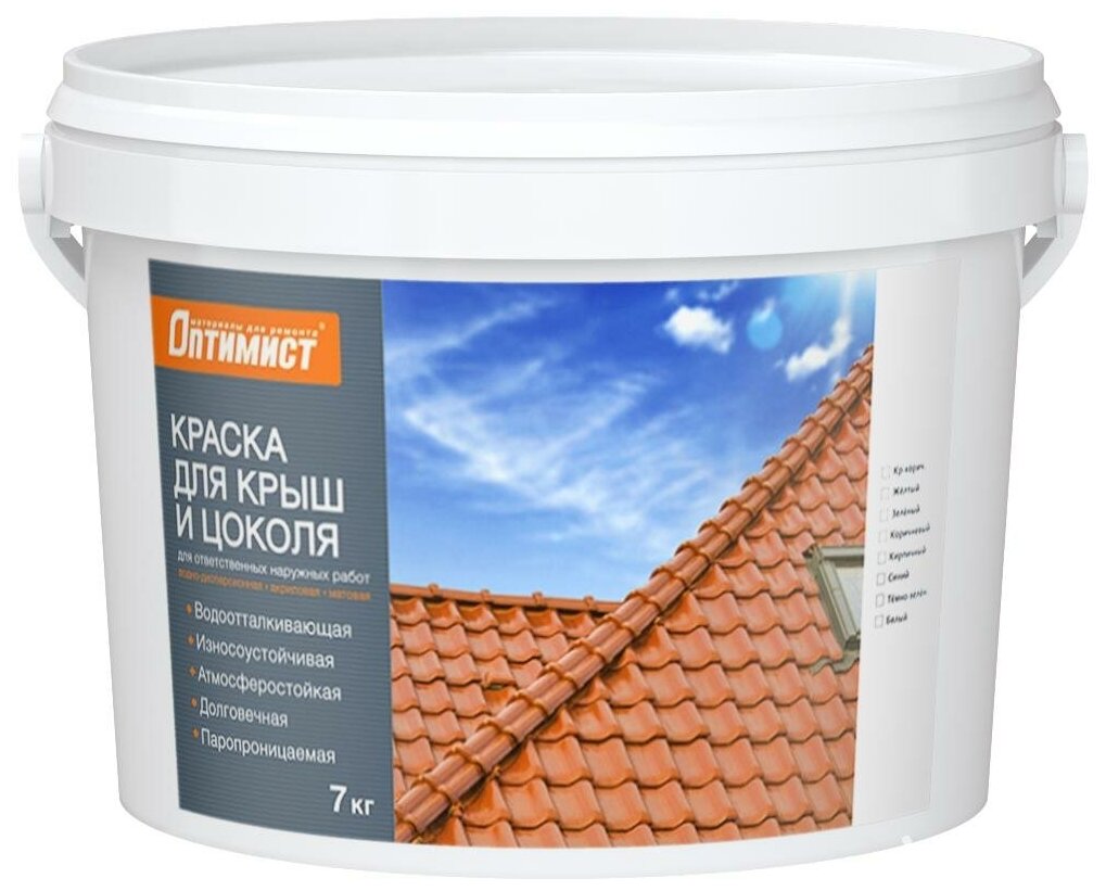 Краска для Крыш и Цоколя Оптимист F304 7кг Коричневая, Матовая .