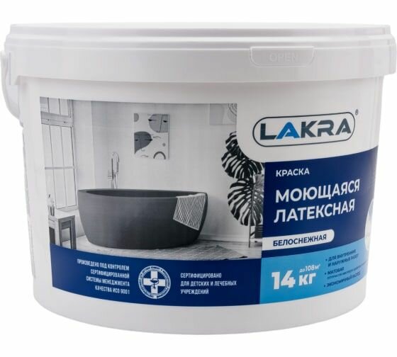 Краска латексная моющаяся Лакра белая матовая, 14кг