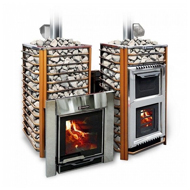 Дровяная печь для бани ERMAK 36 сетка люкс GOLD (Нержавейка)